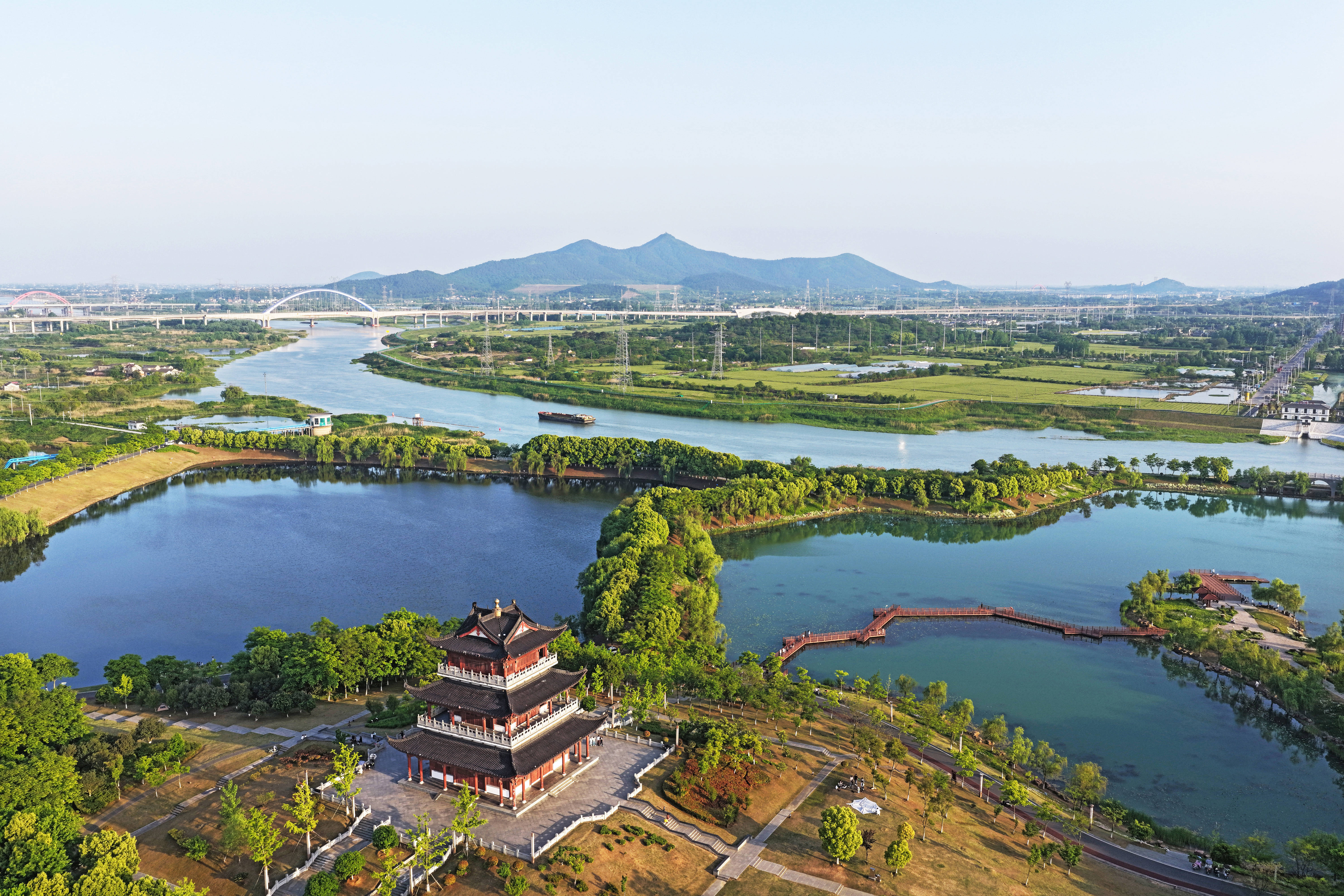 ↑2026年4月26日在安徽省马鞍山市当涂县姑孰镇拍摄的风光。(无人机照片)CICPHOTO/王玉实 摄