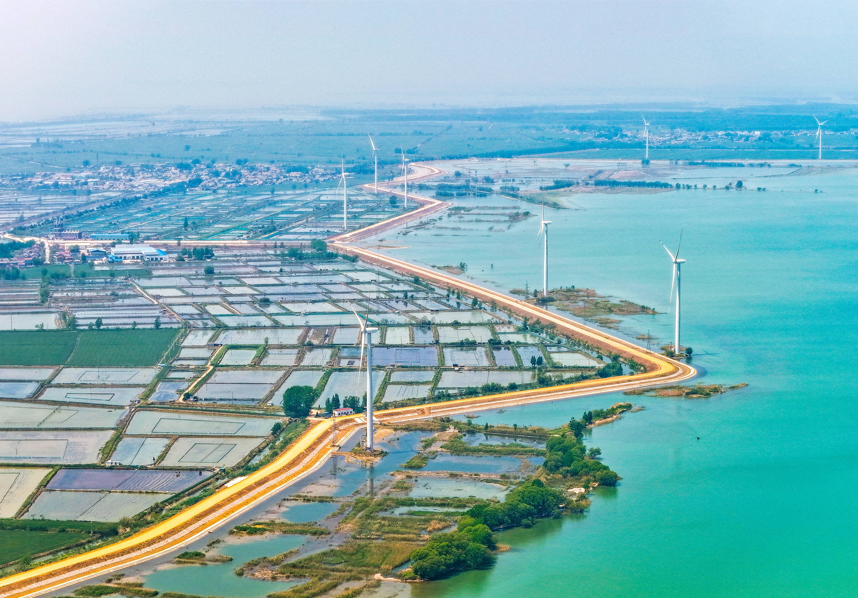 ↑2026年4月25日在江苏省宿迁市泗洪县洪泽湖周边拍摄的风光。(无人机照片)CICPHOTO/张连华 摄