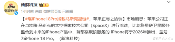 与此同时,美国科技媒体《The Information》透露,苹果正与马斯克的SpaceX进行深入洽谈,计划在iPhone18系列中整合Starlink卫星上网功能。