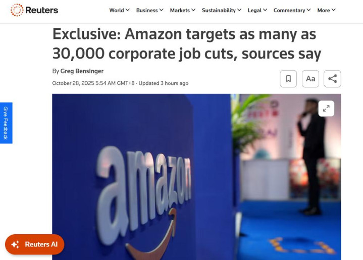 这一数字约占亚马逊155万名员工总数的一小部分,但约占其约35万名企业白领员工的近10%。这将成为自2022年底以来亚马逊最大规模的一次裁员,当时该公司裁减了约2.7万个岗位。亚马逊发言人对此不予置评。