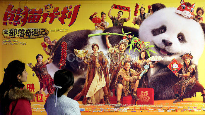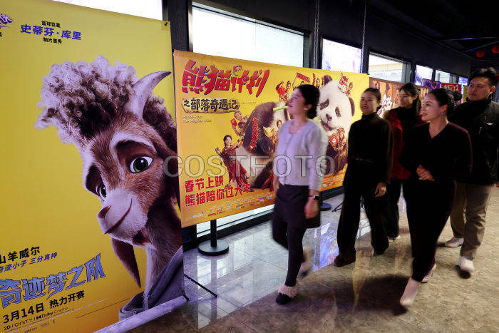 2026年3月24日,在山东省枣庄市市中区中心街街道一家影城,观众从电影海报前走过。(吉喆 孙淑婷/Costfoto,版权作品,严禁转载)