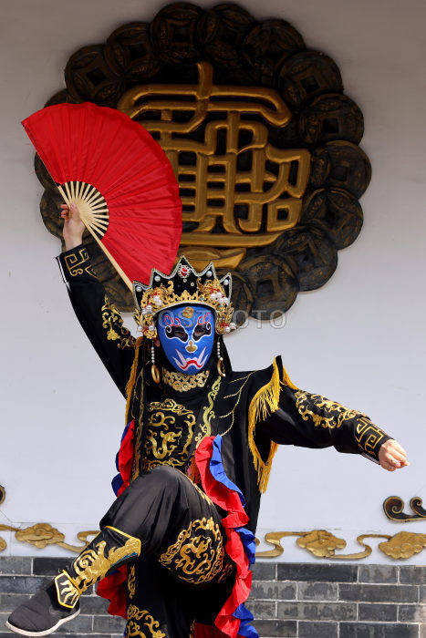 2026年3月25日,民间艺人在山东省枣庄市台儿庄古城表演“变脸”。(吉喆 孙淑婷/Costfoto,版权作品,严禁转载)
