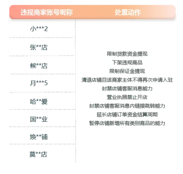 微信小店称,坚决打击此类利用虚假服务实施欺诈的违规行为,并持续开展专项巡查与治理,近一个月已处置108位违规商家/带货者。现将部分违规案例解析及处置情况公示如下: